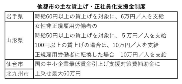 前田議員:一過性と言うが、1回でも賃上げできれば効果は継続されるのではないか。山形県のように女性の正規化や就職氷河期世代に加算する自治体もある。神戸市は女性の就業率は政令市で下から3番目。女性の正規化、雇用率と賃金を引き上げて働きながら子育てができるような支援策をつくるべきだ。