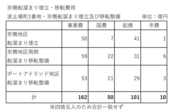 長谷川港湾局長:埋め立ての費用50億円と、船溜まりの移転整備が110億円だ。